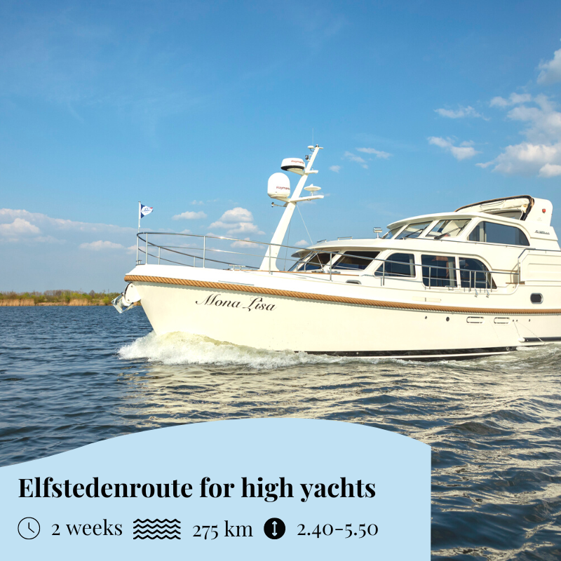 The route cannot be navigated with every type of boat, which is why it is specifically designed for yachts with a height of 2.40/2.50 meters.