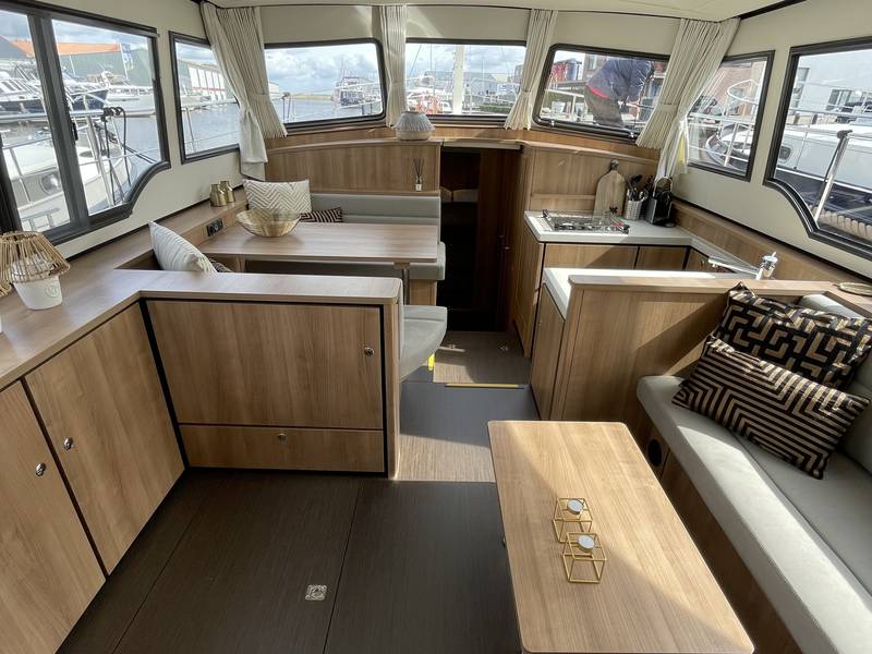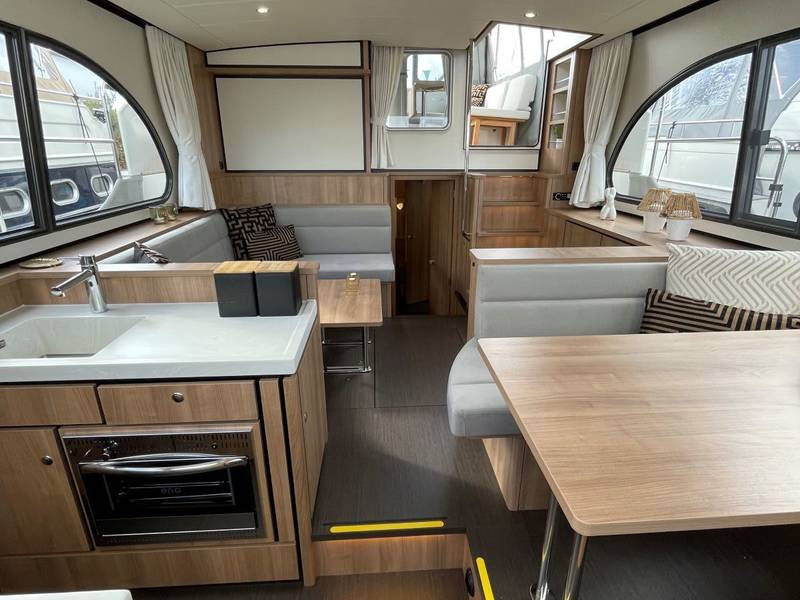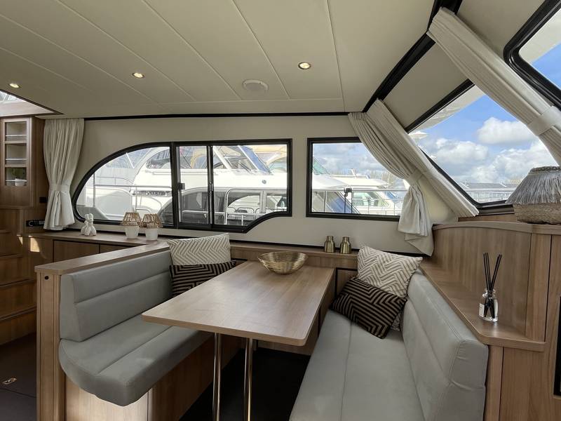 The saloon is very spacious and light and offers plenty of room for 6 people. The saloon has a television with Apple TV receiver.