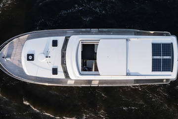 The helm station is designed for clarity and comfort. The Raymarine navigation equipment – including chart plotter, tridata, autopilot, radar and VHF – supports relaxed cruising and ensures confidence underway. With bow and stern thrusters and a powerful generator, manoeuvring and staying on board is effortless and carefree.