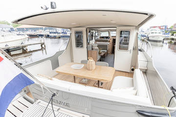 The interior is light and calm, finished to the high-quality standards that define Linssen Yachts. The yacht offers two comfortable cabins, two bathrooms and two electric toilets, one of which includes a spacious shower. Privacy and comfort are perfectly balanced.