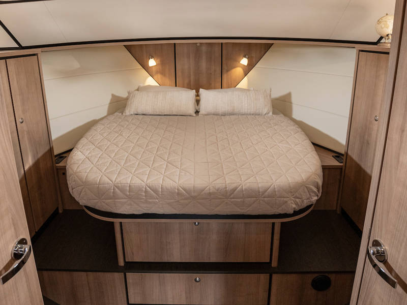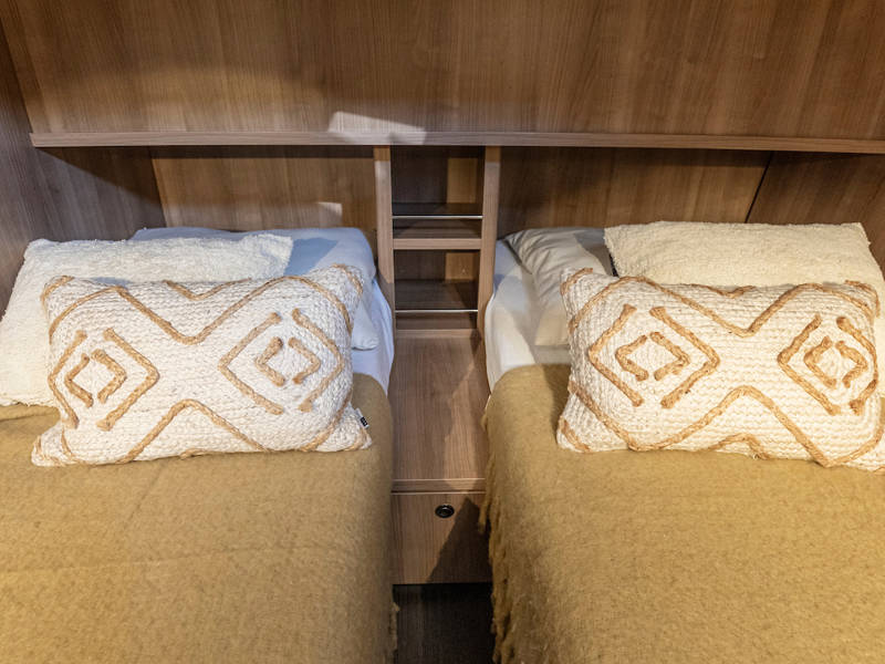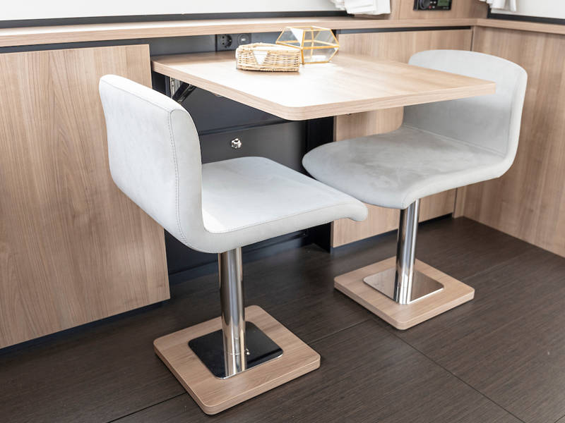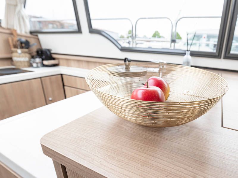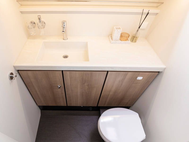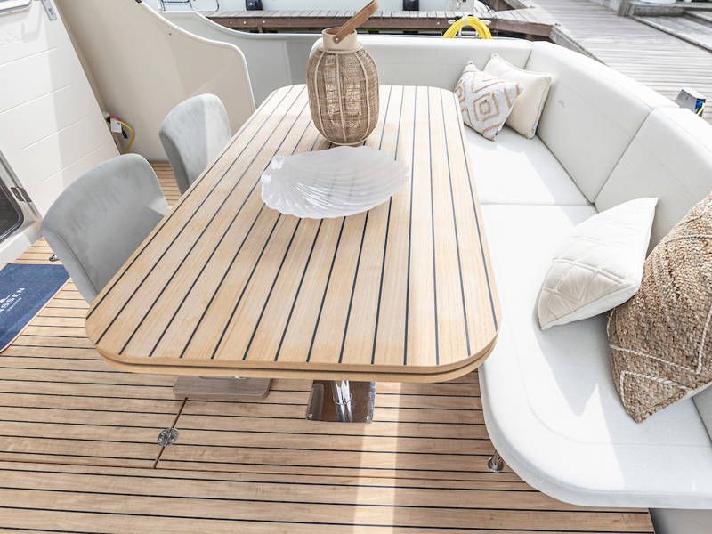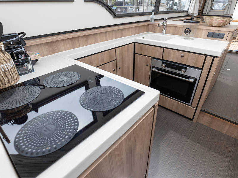 The yacht is laid out with two sleeping cabins, two bathrooms, two electric toilets and one large shower.The saloon has an easy-sleep system, where you can make a double bed in no time.