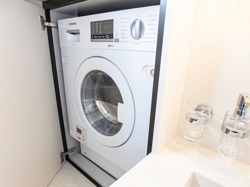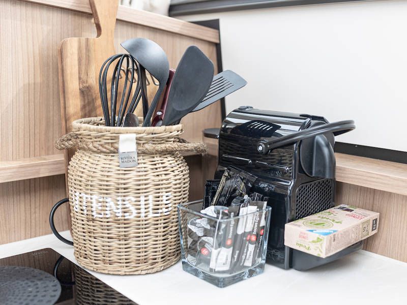 The kitchen is generous and equipped with all the necessary kitchen appliances, such as a hob, fridge and oven.