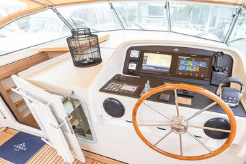 Incidentally, the cabrio can be partially removed in summer weather. The Linssen GS 40.0 Intero is equipped with a complete navigation package (Raymarine, plotter, autopilot + Ray 90 VHF radio.