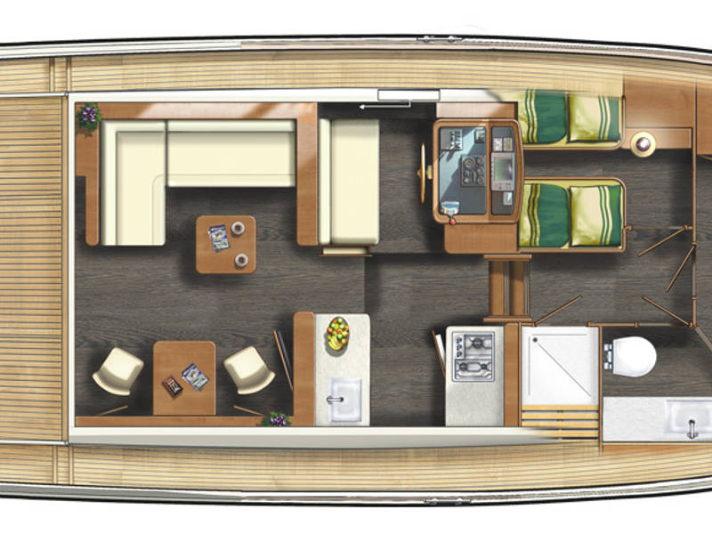 This super charming open cockpit model is a very welcome addition to our fleet. This is a true 'space ship'. The saloon flows into the spacious open cockpit and gives a lot of light and a feeling of luxury.