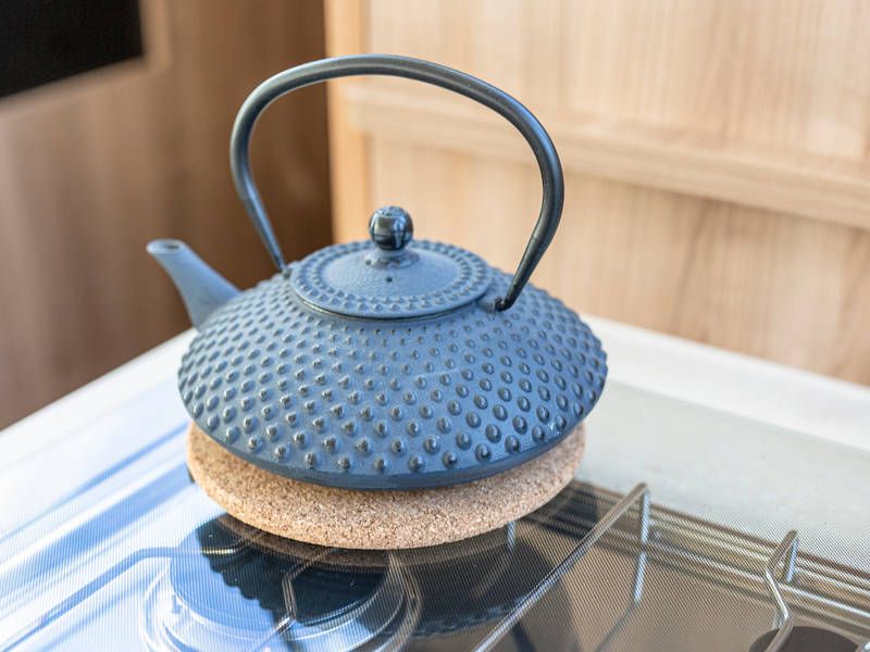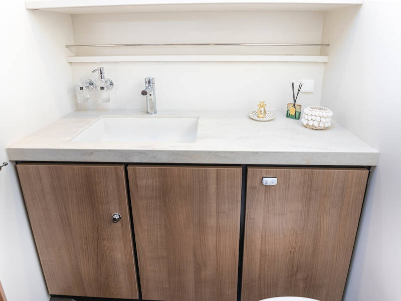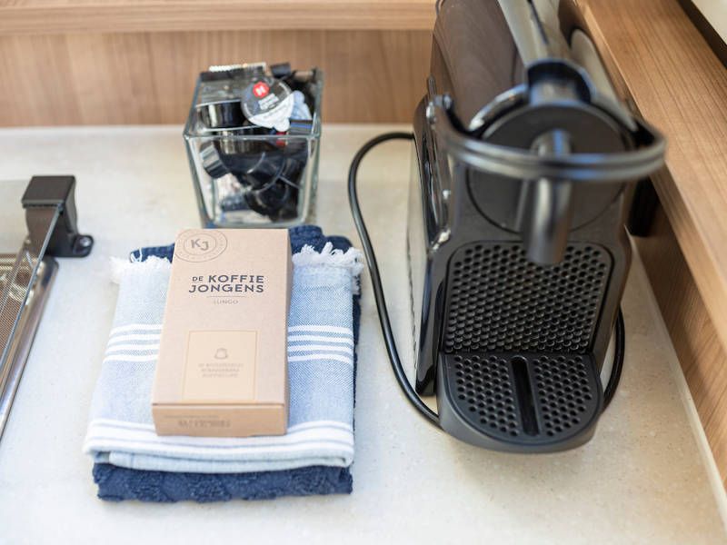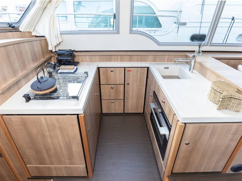 The kitchen is fully equipped for a long and pleasant stay on board.
