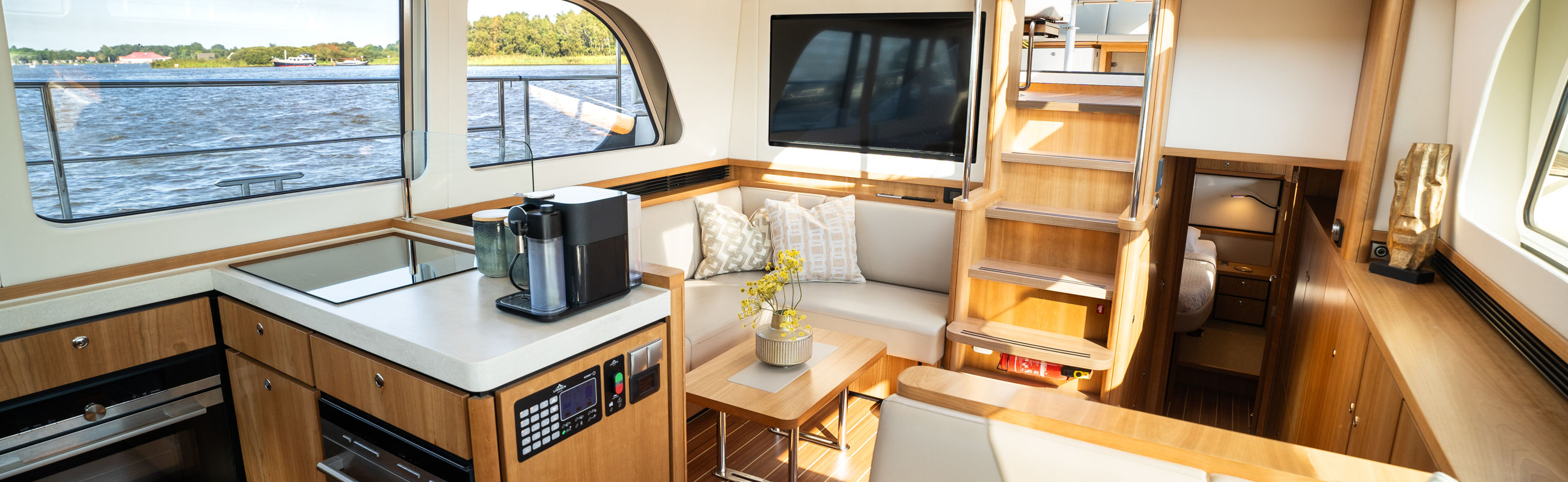 The televisions on board receive their signal via the fixed internet on board and offer a wide range of programmes via Apple-TV.