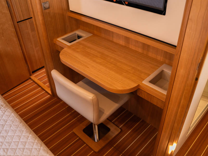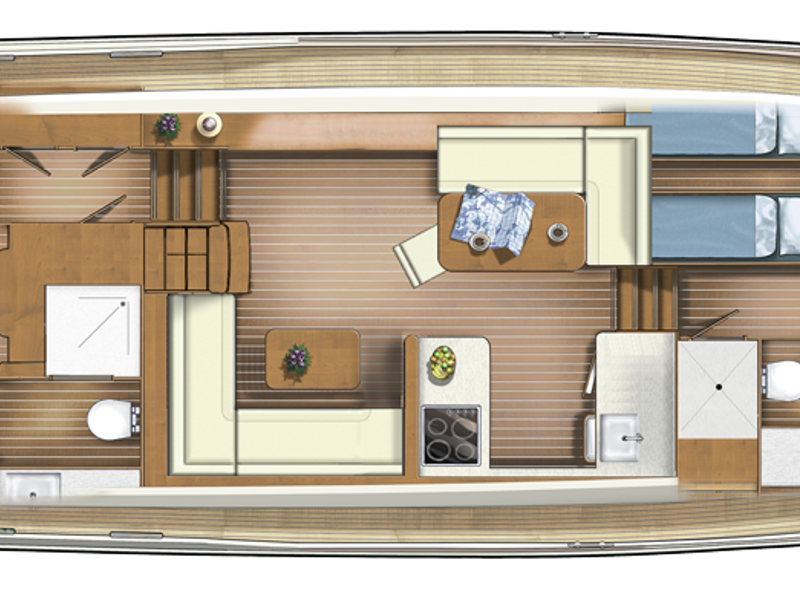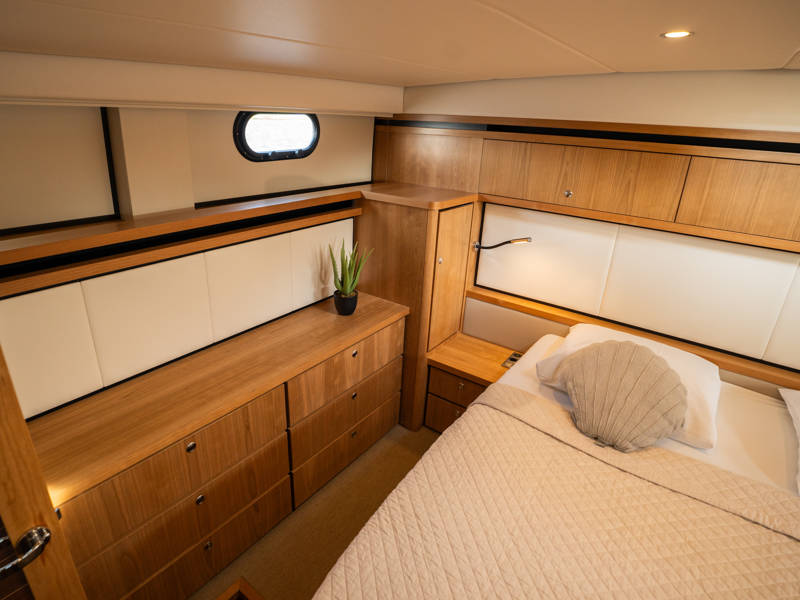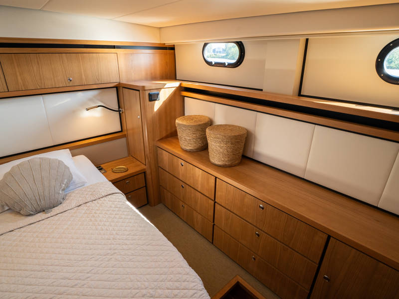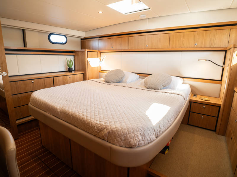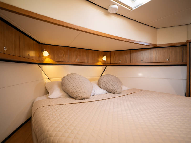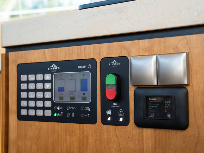The layout is ideally suited to 4 to 6 people. In the wheelhouse, the dashboard is fitted with all conceivable navigation tools and, in addition, a powerful set of stabilisers which means that any sailing area is technically possible for this sturdy Linssen yacht.