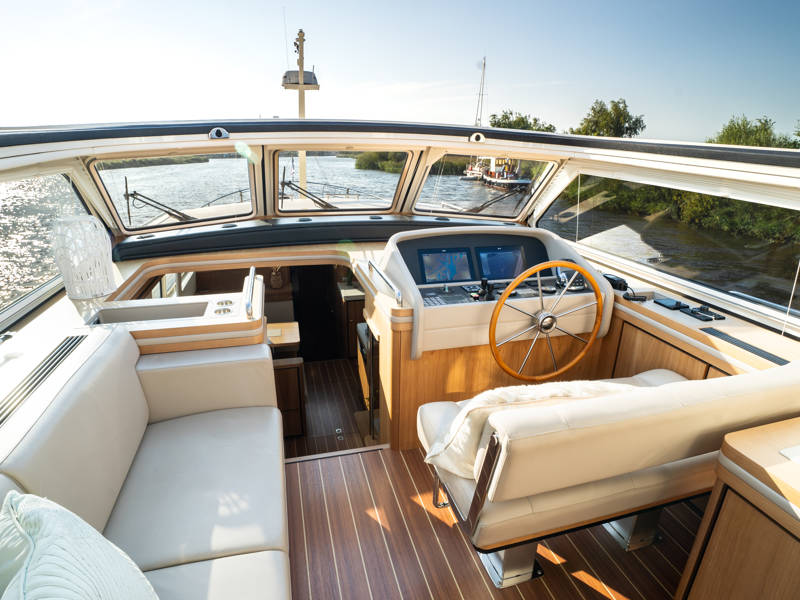 The Linssen Grand Sturdy 480 AC Variotop Blue Sky, a super-equipped yacht with very chic looks. This brand new showpiece of the fleet has every conceivable luxury and comfort.
