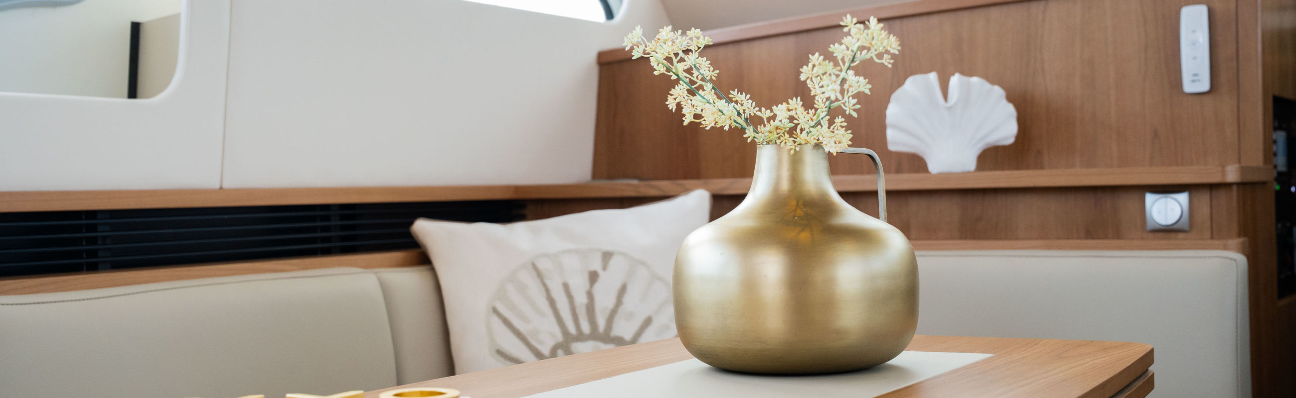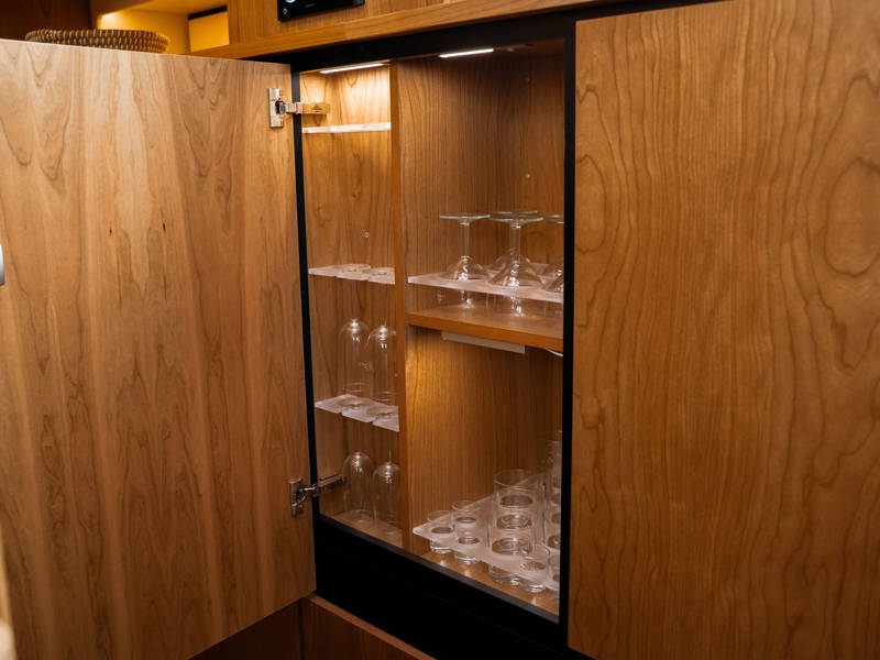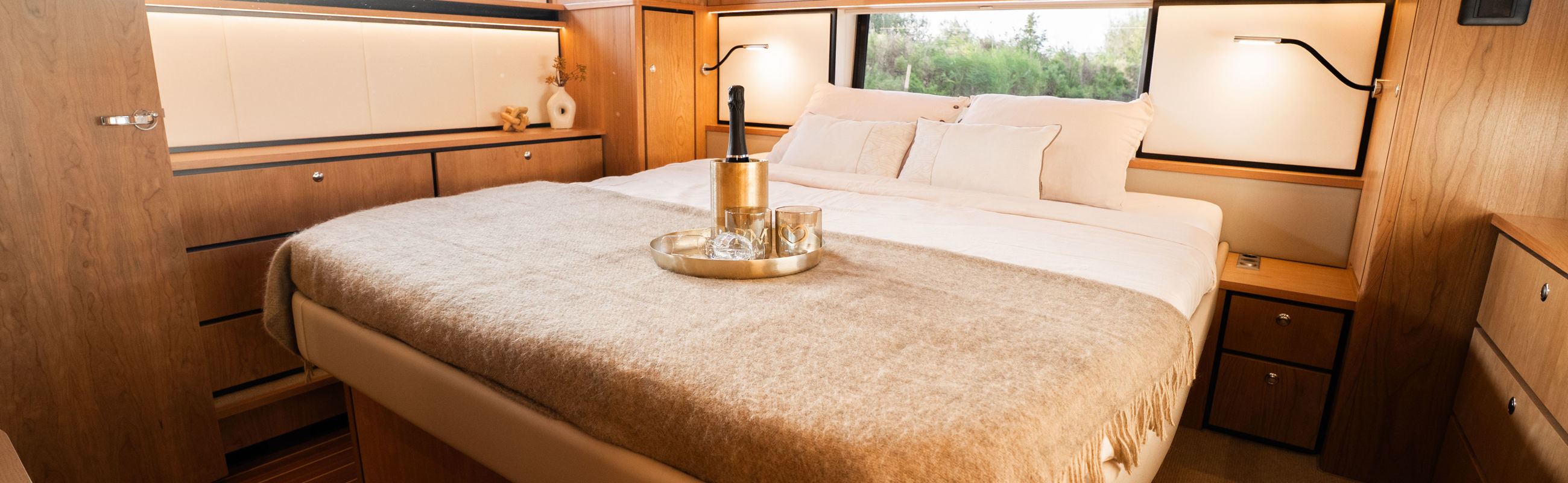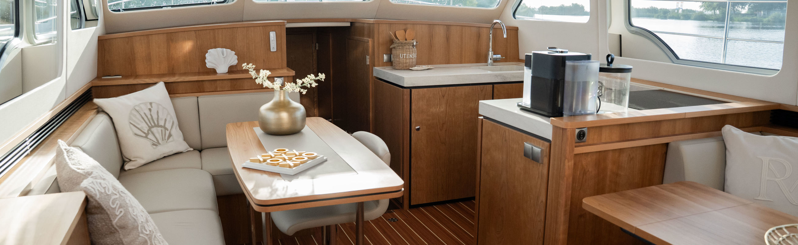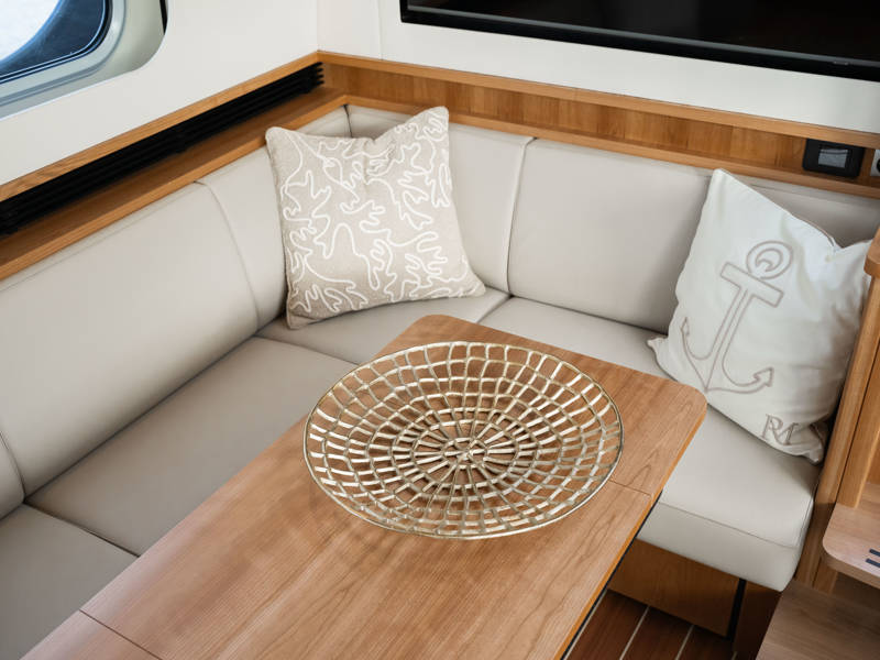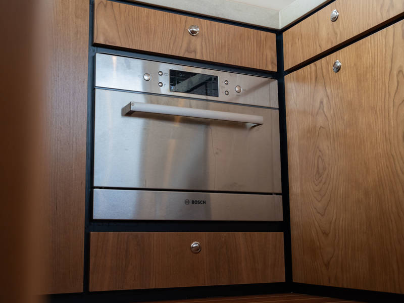 The Matisse includes a state-of-the-art galley with combi-oven, dishwasher, and induction cooktop, as well as a high-performance generator and air conditioning throughout. The elegant pleated blinds in the saloon and wheelhouse are electrically controlled for added comfort and style.