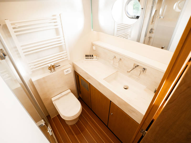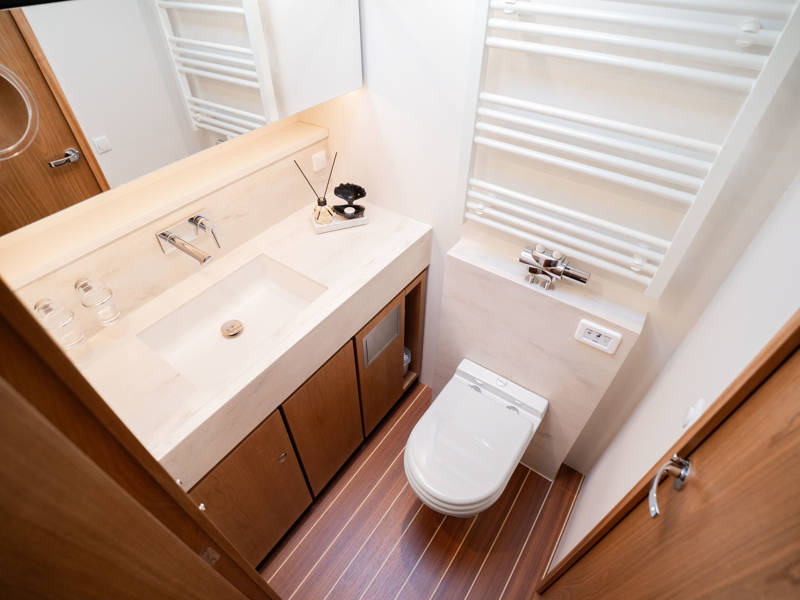 The Matisse is equipped with a fully automated biological black water treatment system that uses microorganisms for sustainable and eco-friendly water management on board, ensuring a responsible and comfortable boating experience.